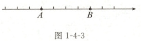 10. 如图 1 - 4 - 3,数轴的单位长度为$1$,若点$A$,$B$表示的数的绝对值相等,则点$A$表示的数是(