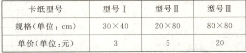)(2)今有三种不同型号的长方形卡纸,其规格、单价如下表所示: