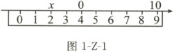 13. 如图 1-Z-1,将一把刻度尺放在数轴上,刻度尺上的数 2,4,9 分别对应数轴上的 x,0,10,则 x 的值应该是