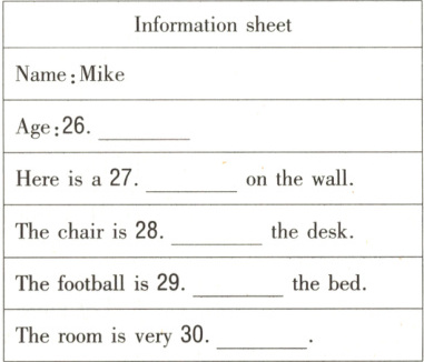 26.13/thirteen 27.picture 28.next to 29.under 30.tidy