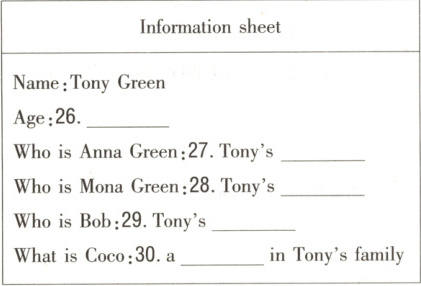Ⅳ.26.8/eight 27.mother 28.sister 29.cousin 30.dog/pet