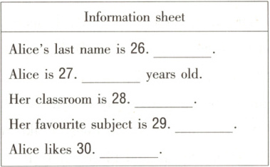 I have 31 pretty English teacher. She is 32 thirty years old. She has long 33 hair. I think it looks like the 34 of the sun. I am always in a 35 mood(情绪) when I see her. She 36 English very well and her voice(声音) sounds beautiful!