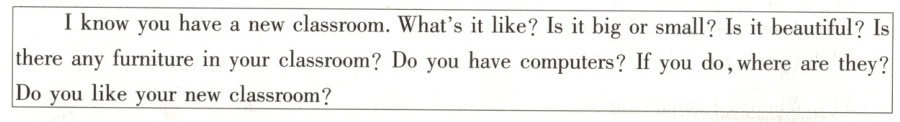 81. 假如你是李华,收到了你的外国笔友Cindy给你的来信,她想了解你的新教室,以下是她给你来信的部分内容,请根据所给内容给Cindy写一封回信,介绍你的新教室。开头和结尾已给出,不计入总词数。