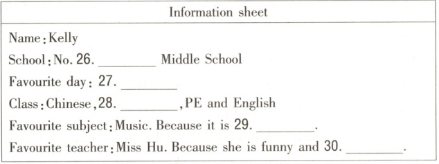 )25. Who is Jenny's favourite teacher?A. The PE teacher. B. The maths teacher. C. The Chinese teacher.