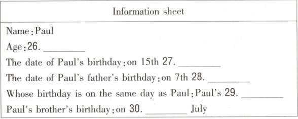 (2025·河北石家庄新华区期末) Birthdays are important to everyone. I'm Sarah. Today is 3rd September, and it's a special day for my sister Mary. It is 31 birthday. It's not on the weekend, 32 we all come together to celebrate it.
