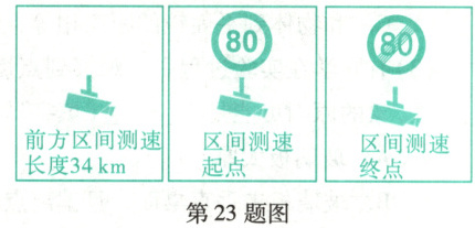 23. (9分)(沈阳市七中期中)如图所示是某高速路上的一个区间测速的相关标识。区间测速的基本原理:通过监控摄像头获取车辆到达区间测速起点的时间、车辆到达区间测速终点的时间,从而得出该车辆通过该测速区间的时间,结合区间距离计算平均车速,用来判定车辆是否超速。假设某车辆以70km/h的速度进入如图所示的区间测速路段,行驶了一段距离后,又以100km/h的速度行驶了0.2h,然后再以70km/h的速度继续行驶直至离开该区间测速路段,请计算: