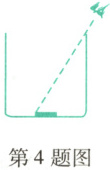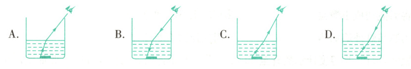 4. (鞍山市铁东区期末)将一枚硬币粘在搪瓷杯底部,将头部向后移一点儿,使硬币刚好被杯口边缘遮住而看不见,如图所示。一位同学把水徐徐加入杯中(不改变硬币的位置),硬币又可以重新映入眼帘。下列光路图能解释其原因的是(
