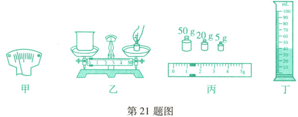 21. (4分)为了平衡营养,小敏的妈妈买了多种杂粮。小敏想知道红豆的密度,于是和学习小组的同学们一起利用天平和量筒进行测量。他们的操作如下: