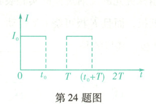 (2)由题图可知,在0~2T时间内,白光LED灯在t₀~T和(t₀+T)~2T时间段电流为0,即在此时间段内灯不发光。由文中所述“在电流周期T小于人眼视觉暂留时间(约0.1s)的情形下,人眼便感觉不到灯的闪烁”可知,当T<0.1s时,人眼才感觉不到灯闪烁,且“发光强度与电流的占空比成正比”,D=t₀/T,即t₀/T比值越大,灯的光强度越大,C项D=0.5,但T=0.1s,D项T=0.03s<0.1s,故D项正确。