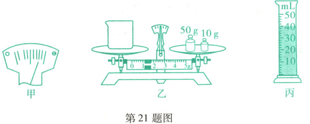 21. (5分)在做测量液体密度的实验中,小乐想知道食用油的密度,于是他用天平和量筒做了如图所示的实验。