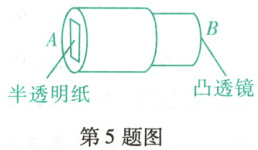 5.如图所示,纸筒A一端蒙了一层半透明纸,纸筒B的一端嵌了一个凸透镜,两纸筒套在