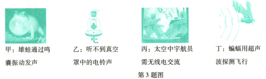 3. 如图所示四个声现象中,可以用相同的声学知识解释的是(