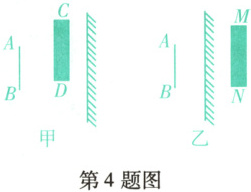 4. (沈阳市七中期中)物体AB直立于足够大的平面镜前,图甲中物体与平面镜之间插入一块不透光的木板CD;图乙中平面镜后面插入一块不透光的木板MN。则物体在两图的平面镜中,能否成完整的像的情况是(