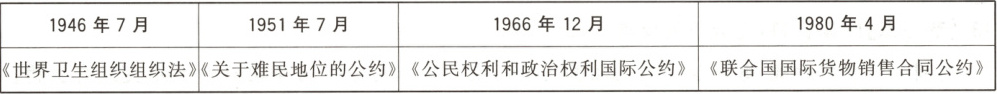 8. 下表内容是第二次世界大战以来国际社会签订的部分声明、宣言、公约等。这反映出
