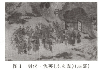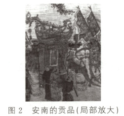10. 【热题型】《职贡图》这一题材是描绘中国境内少数民族或外国的贡使形象的纪实性图画。明代仇英《职贡图》绘制了边疆少数民族和来中国朝贡的外国使团共11支队伍进京的情景,图1为安南使团进京情景,图2为图1的局部放大图,内容是大象载着贡品徐徐前进。该组图