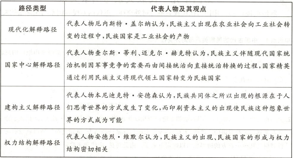 ——摘编自刘永涛《民族主义与欧洲民族国家形成的四种解释路径研究》