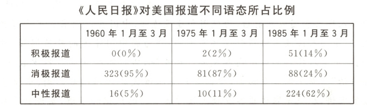 7. 阅读下表,某一阶段《人民日报》对美国报道语态变化最大,其主要原因是