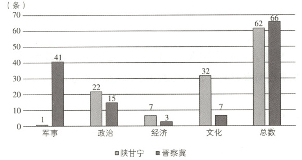 1938 年《新华日报》有关陕甘宁和晋察冀根据地的报道情况图。据此可知A.敌后根据地成为抗战的主战场