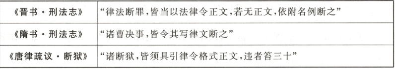 4.C 【详解】根据材料信息可知,晋、隋、唐法律规定,司法判罪当以律令或名例为依据,违者受罚,确立了罪刑法定的原则,C项正确;材料的主旨是司法判罪当以律令或名例为依据,与礼无关,排除A项;“杜绝”说法绝对,排除B项;材料主旨与“维护了专制统治权威”无关,排除D项。