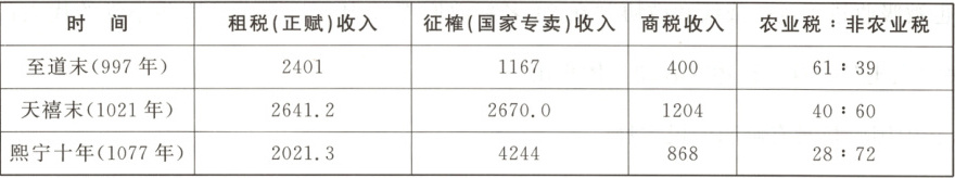 6. 下表是北宋赋税结构表(收入单位:万贯)。对此表解读正确的是