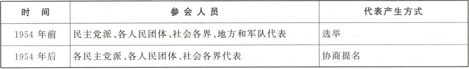 5. 下表为 1954 年前后中国人民政治协商会议全国委员会变迁表。据表可知