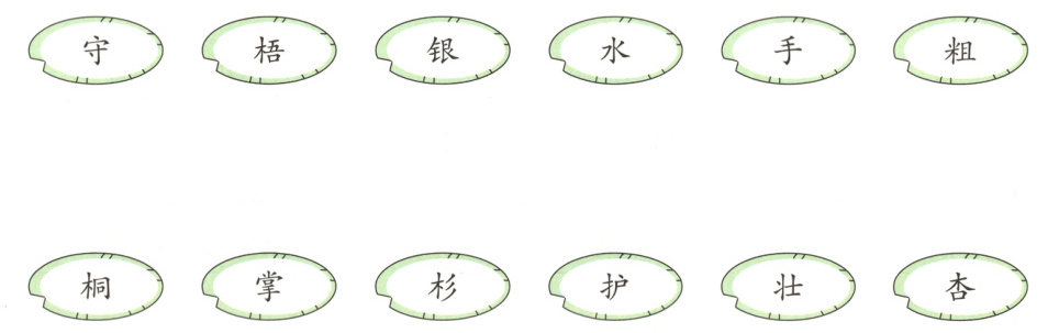 四、示例:1.榕树壮 梨花白 2.银杏树叶 扇子