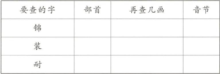 三、钅 8画 jǐn 衣 6画 zhuāng 而 3画 nài