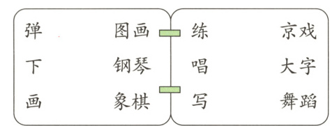 三、弹——钢琴 下——象棋 画——图画 练——舞蹈 唱——京戏 写——大字