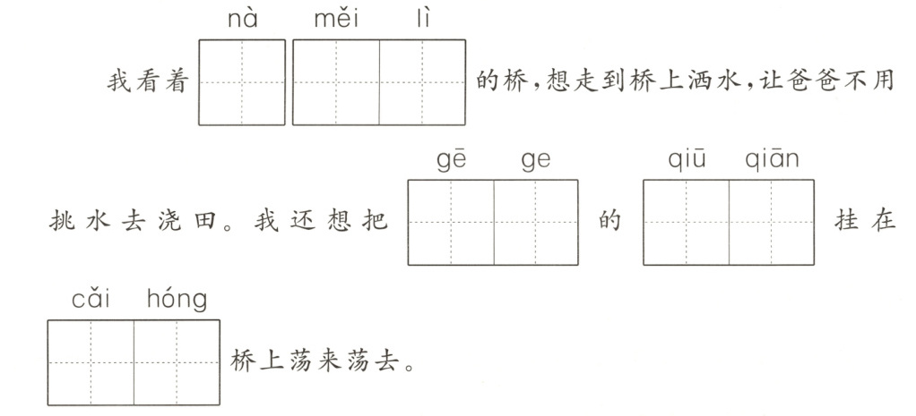 2. 哥哥$\begin{array}{|c|}\hline \\ \hline\end{array}$你系在门前树上的秋千呢$\begin{array}{|c|}\hline \\ \hline\end{array}$