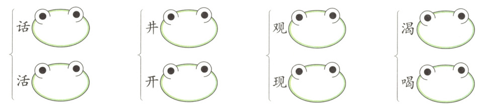 二、坐井观天的小青蛙和小鸟交谈后,决定去外面的世界历险,下面是小青蛙记录的历险原因,请你帮忙给加点字注音。