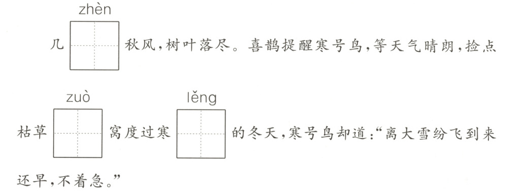 二、读拼音,写字词,还原寒号鸟不搭窝的原因。