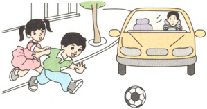 事件:小明追逐滚到马路中间的足球,小红急忙拉住他,阻止他跑到有汽车行驶的马路上。