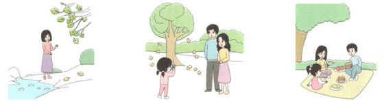 二、下面三幅图是你沿路的所见,请运用“在……在……在……”的句式将你的所见串联起来。