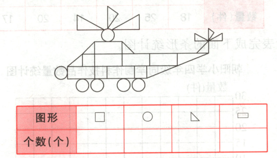 (1)数一数拼成这架直升机的基本图形各有几个,完成统计表。