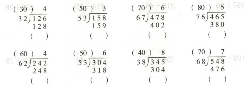 $473÷78\ \ \ \ \ \ 204÷53\ \ \ \ \ \ 435÷73\ \ \ \ \ \ 198÷28$