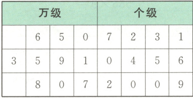 1.六百五十万七千二百三十一 三千五百九十一万零四百五十六 八百零七万二千零九