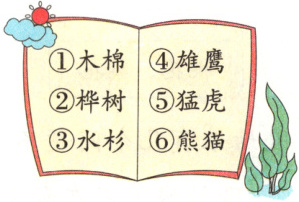 3.② ③ ① ⑥ ⑤ ④示例:③ 水杉有“活化石”之称⑥ 熊猫长得很可爱