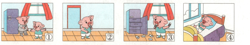 五、【看图写话】小法官巧断案——小猪为何会肚子痛?(15分)