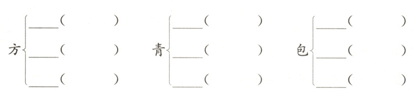 3. 【形声字】给下面的字加上不同的偏旁变成新字,再组词。(9分)