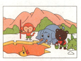 一天,小鸭、小熊、小猴和大象约好一起去野营。小鸭边走边唱,结果一不小心掉进了深深的土坑里,它焦急地喊着:“救命,救命!”这时小猴找来了一根竹竿,它想用竹竿把小鸭拉上来,可惜竹竿不够长。大象急中生智,想到了一个办法,它让小熊和小猴轮流去提水,它自己用鼻子吸水,再往洞里注水。大家采用这个办法,齐心协力,小鸭最后随着水位的上升浮上来了。小鸭说:“谢谢你们把我救上来。”大家都说:“不用谢,我们都是好朋友。”随后,这四个好朋友一起开开心心地去野营了。