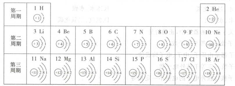 (2)①一般原子中最外层电子数小于4时,在化学反应中易失去电子;当原子最外层电子数大于4时,在化学反应中易得到电子,元素的化学性质与最外层电子数有关,第Ⅰ纵行的元素(除H外)最外层电子数为1,故容易失去电子。②根据原子结构示意图分析可知,同一横行的元素具有相同的电子层数;同一纵行的元素具有相同的最外层电子数。③根据元素在元素周期表中的排布规律可知,核电荷数为19的元素应在钠元素的下面,故其原子最外层上的电子数与钠原子相同。