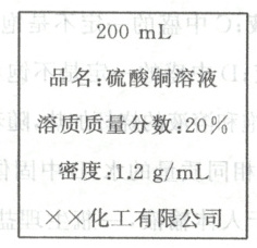 (1)这瓶硫酸铜溶液中溶剂的质量是200 mL×1.2 g/mL-(200 mL×1.2 g/mL)×20%=192 g。
