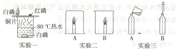 (1)实验一,铜片上的白磷燃烧而红磷不燃烧说明可燃物燃烧需要的条件之一是