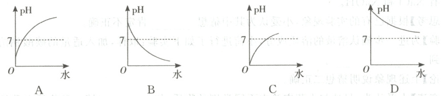 7.D 解析:pH=10的溶液显碱性,加水稀释溶液变稀,其碱性逐渐减弱,但仍然是碱性溶液,所以它的pH会从10逐渐变小而无限接近于7,不会等于7,更不会小于7。