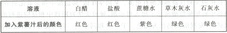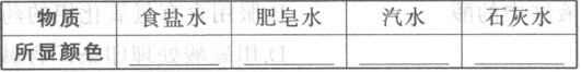 。(2) 取所选花汁少许分别滴入上述物质中,请将显示的颜色填入下表中: