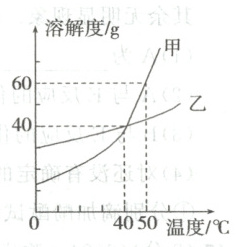 )A.$40^{\circ}C$时,甲和乙的饱和溶液,升温到$50^{\circ}C$仍是饱和溶液