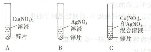 (3)锌片放入硝酸铜和硝酸银的溶液中,先进行的反应是锌和硝酸银的反应,硝酸银反应结束,再进行锌和硝酸铜的反应,若锌是过量的,得到的金属为锌、银、铜,A项符合题意;若锌和硝酸铜、硝酸银恰好反应,得到的金属是铜和银,C项符合题意;若锌是少量的,得到的金属为银,D项符合题意;在此反应的过程中一定有银析出,B项不符合题意。