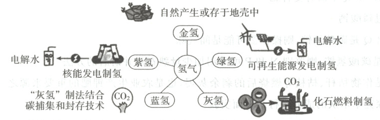 5. (2024·滨州期末)加快能源转型升级,发展新质生产力。氢气是最理想的清洁能源,依据不同制取方式,可分为“绿氢”“灰氢”“蓝氢”“紫氢”和“金氢”等。下图带你认识“多彩”的氢。