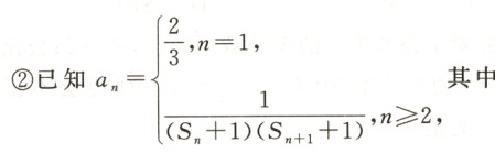 ② 已知$a_{n}=\begin{cases}\frac{2}{3},n = 1,\frac{1}{(S_{n}+1)(S_{n + 1}+1)},n\geq2,\end{cases}$其中$n\in\mathbf{N}^{*}$,$T_{n}$为数列$\{a_{n}\}$的前$n$项和,若$T_{n}\leq\lambda(S_{n + 1}+1)$对一切$n\in\mathbf{N}^{*}$都成立,试求$\lambda$的最小正整数值.