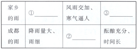 (1)①降雨量少 ②润物无声 ③雷声大雨点小